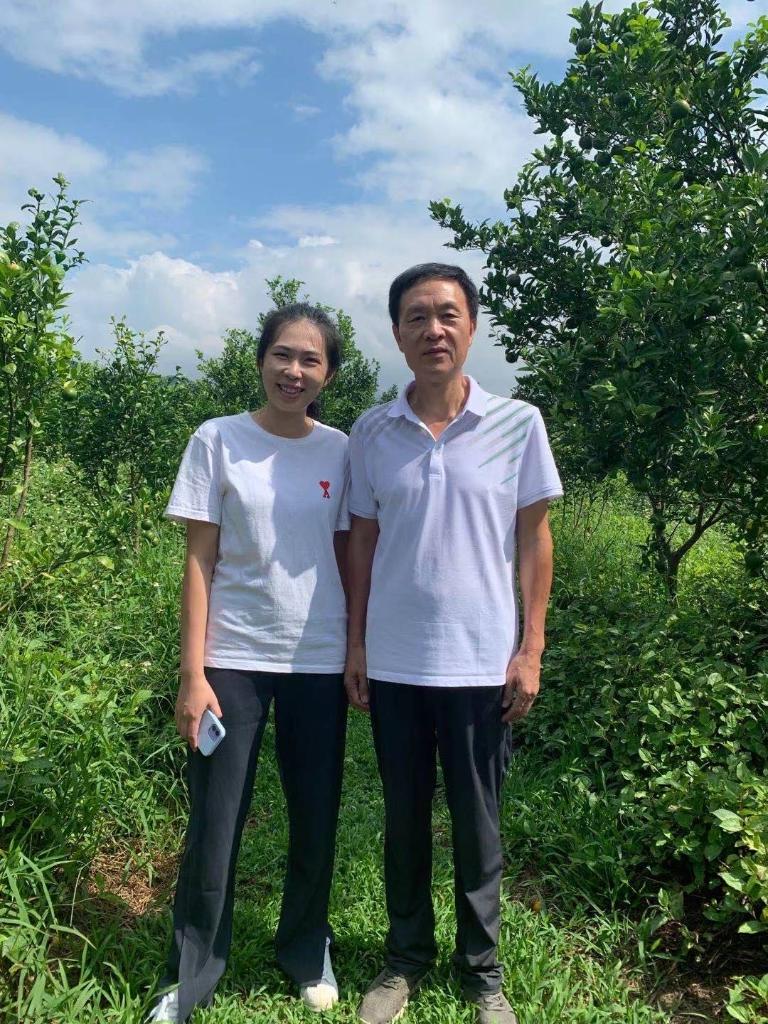 陈慧和父亲在贡柑园里的合影。受访者供图